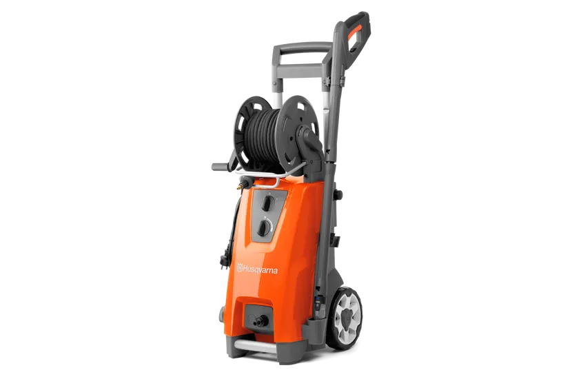 An extra-large and powerful high-pressure washer with a robust and purposeful design, built for the toughest cleaning tasks outside. The brass pump with ceramic pistons ensures outstanding durability. With the pressure control you can adjust water flow and pressure perfectly. Includes an integrated detergent tank which is controlled on the front panel. The brass pump head ensures outstanding long-term performance. A steel reinforced armed high-pressure hose is included. The Low Force grip activates the trigger with less effort and more comfort for your hand. The induction motor ensures a dependable performance while the aluminium carrying handle facilitates transportation. Quick hose coupling, large and robust wheels for better traction, and a long spray lance add to the experience. Two swivel functions, for nozzle adjustment and quick connection, prevent hassle. On-board accessory storage, hose reel with metal support guide for easy roll-up and power cord storage make operation efficient. Two nozzles are included.