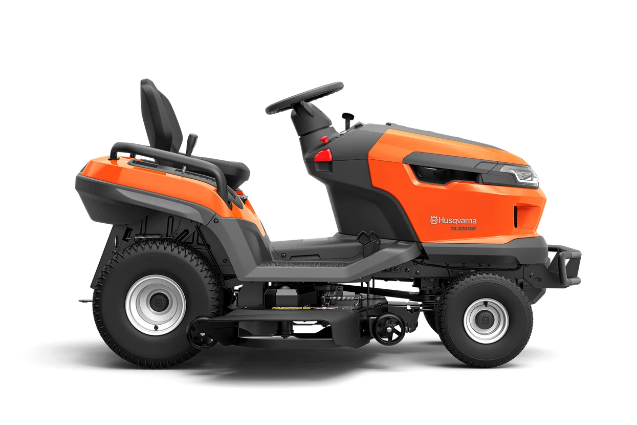 Husqvarna TS 222TDF garden tractor offers comfort-enhancing features and a wide cutting deck to make the maintenance of large lawns efficient and pleasant. Easy-to-reach controls and levers, quickly adjusted seat, and handles contribute to high comfort and good ergonomics. So does the cruise control that lets you rest your foot when mowing large unobstructed areas. The 122 cm specially-designed Clear Cut™ cutting deck is built for superior performance and excellent cutting results, and with a wide range of cutting heights, adjustments can be made to suit different needs and grass conditions. The adjustment is spring assisted to reduce strain for operator. TS 222TDF also features anti-spin transmission, providing improved traction that facilitates driving in hilly terrain.