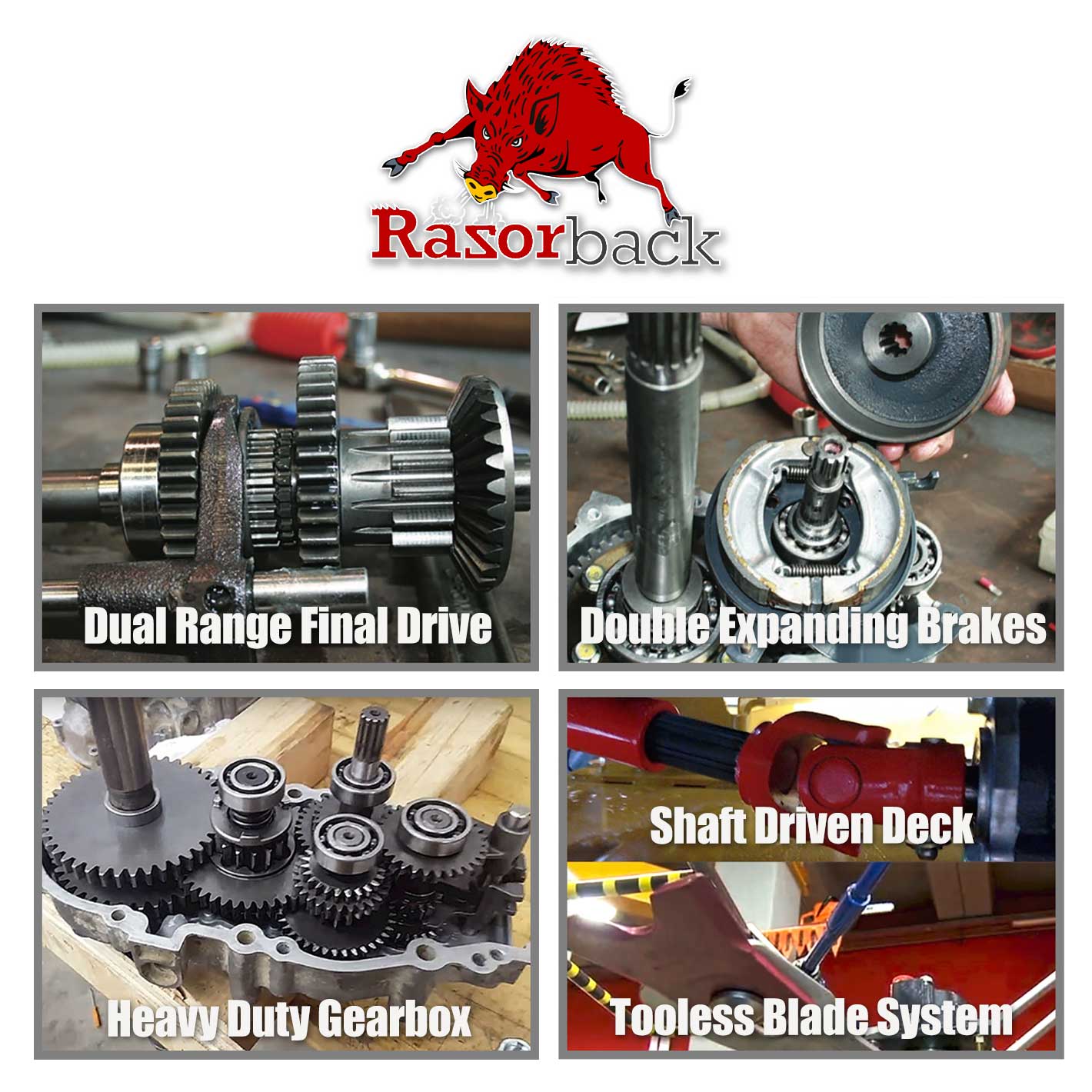 The Razorback CMX2406 is a premium ride-on all terrain mower designed for ultimate performance, safety, and durability, making it an ideal option for contractors and professionals. It is powered by a reliable Honda GX690 twin cylinder engine, which offers significant power while maintaining reduced noise levels. This machine is built for extended periods of use, with a robust all-steel body, a high grass gathering bumper, and hard-to-flat tires, making it Razorback's toughest professional unit to date. While the mower has been designed and built in Japan it is designed to handle our harsh Australian landscape.